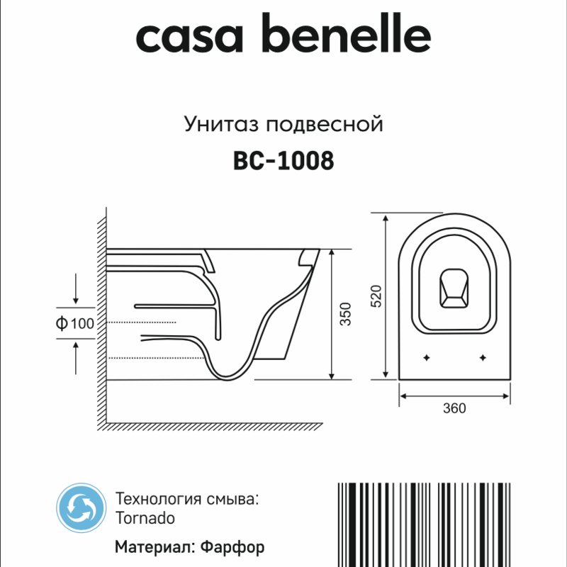 Унитаз подвесной Casa Benelle BC-1008 Tornado