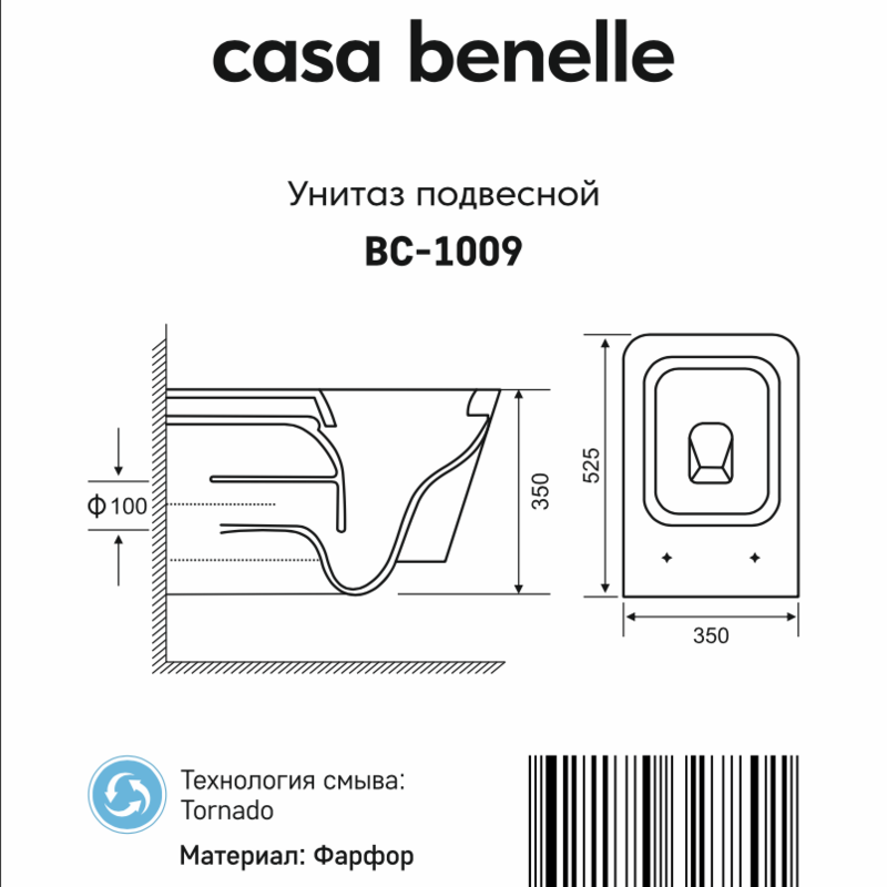 Унитаз подвесной Casa Benelle BC-1009 Tornado